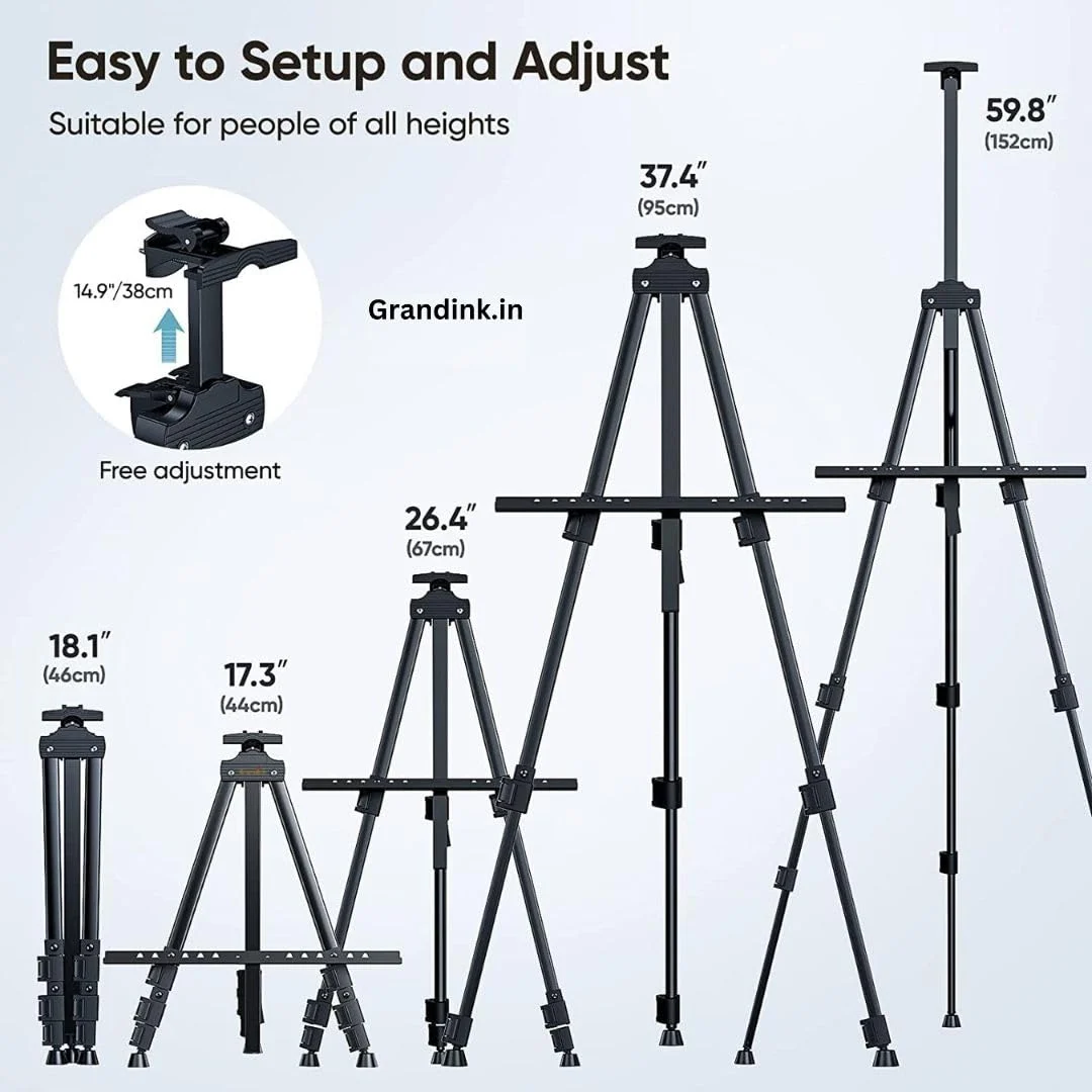 • [FOLDABLE & EASY CARRY] The art easel comes with a portable bag. The tripod design is timeless and elegant. We used 4 adjustable aluminum with compact size- this easel can collapse down to a tiny 18 inches! The compact design is great for carrying around. You will be able to carry it anywhere and everywhere with ease.